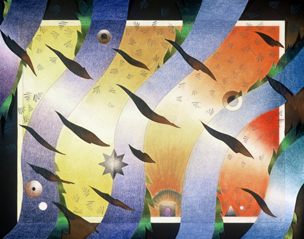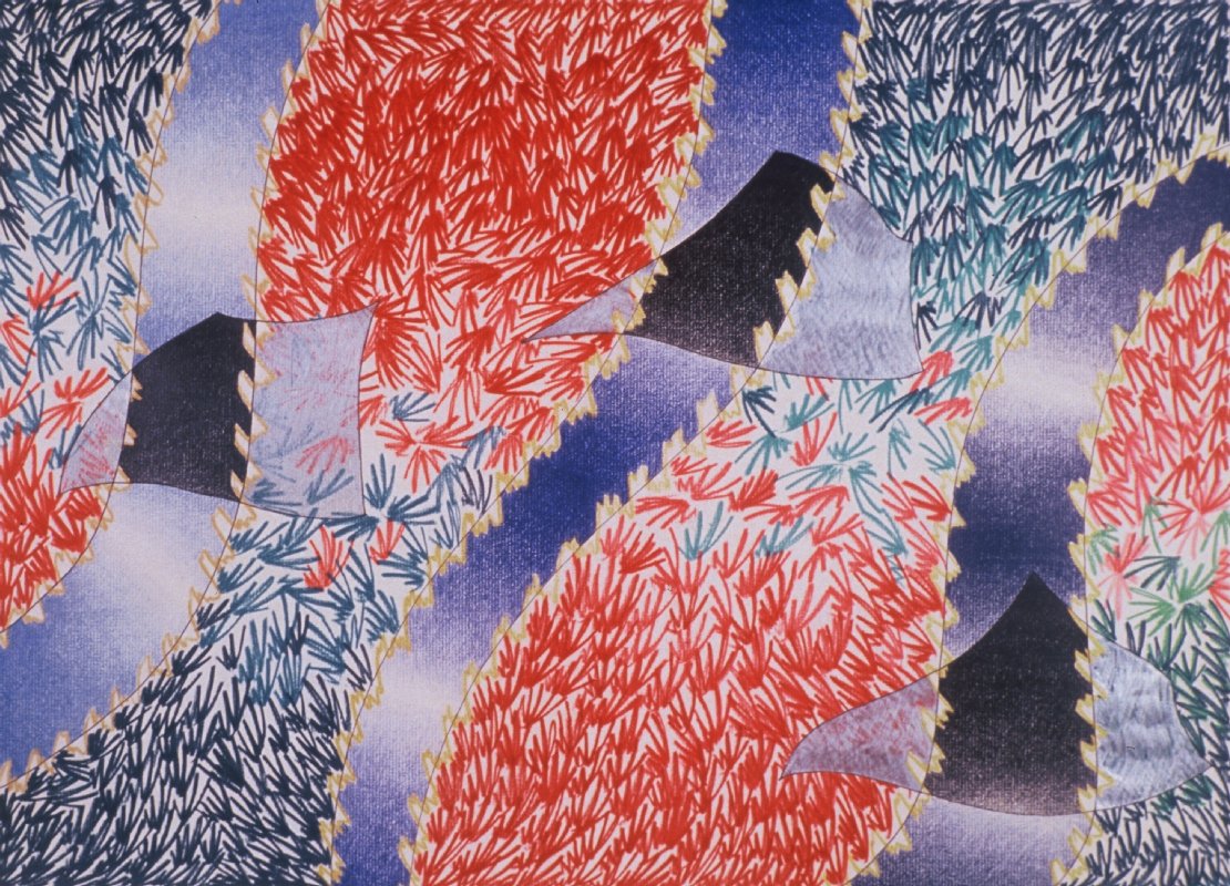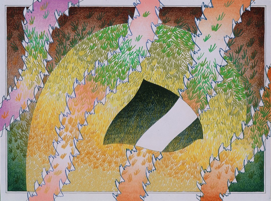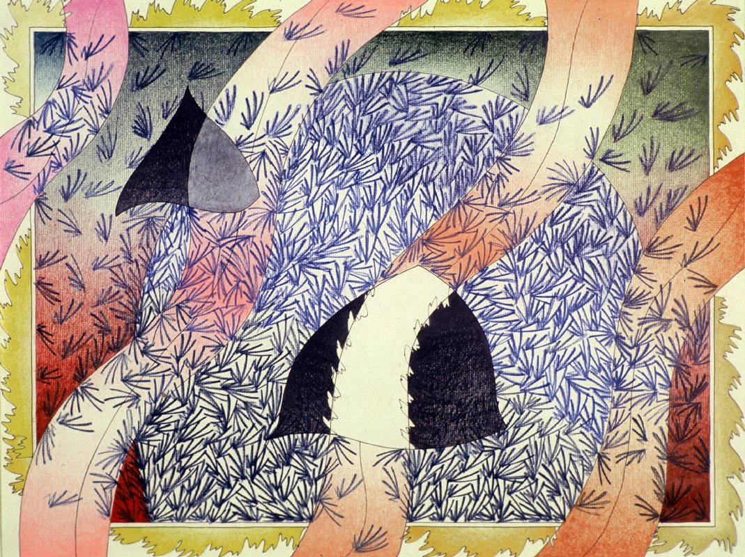 A “swath” is the width made by plowing furrows in the earth, cutting strips of hay in a field, or slashing paths of brush in the wilderness. The drawings in Swath II become wider, wilder, more oscillating, as they seek an equilibrium with their supporting ground. New layers of substrate are revealed.  They team, buzz, hum, and zing with the newness of life.