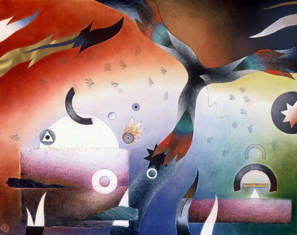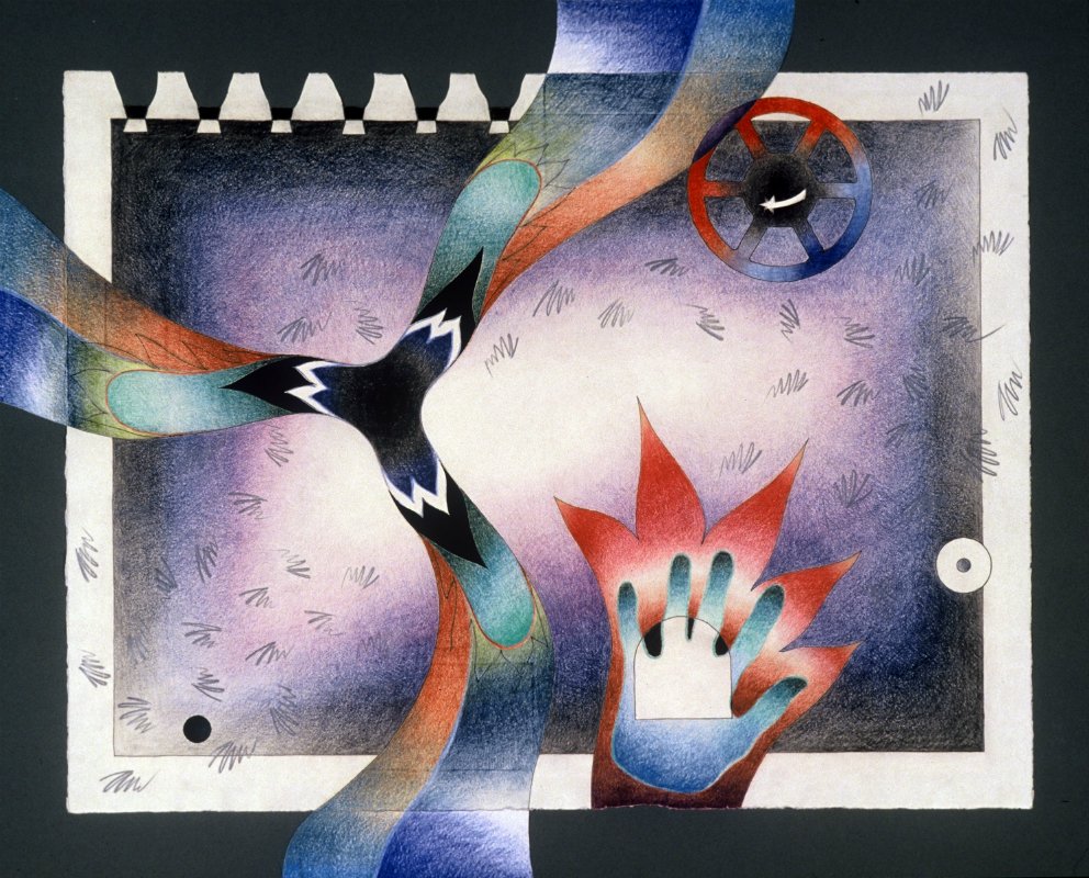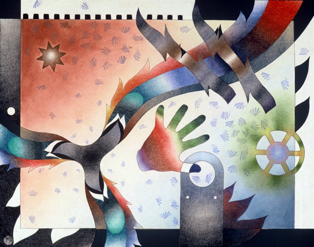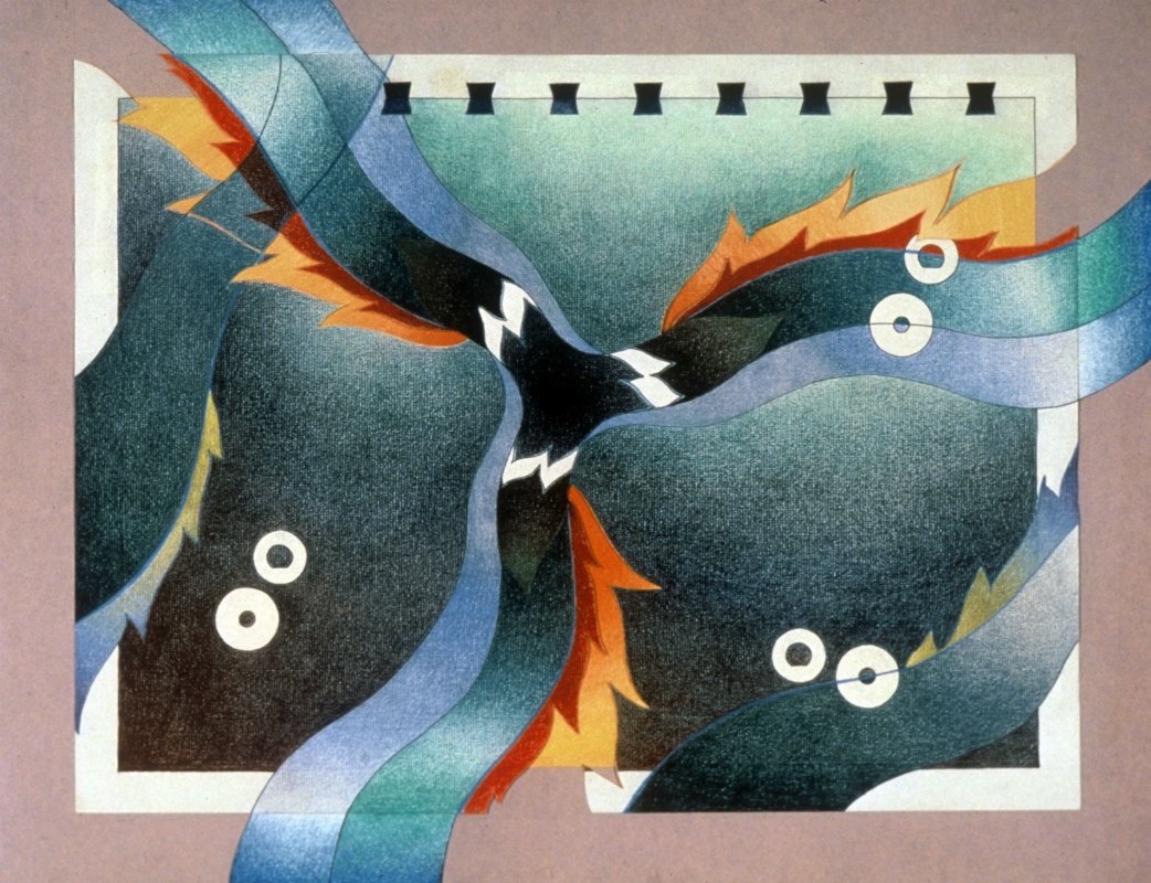 Medium: Color pencil, ink, pastel, on vellum with underlain papers